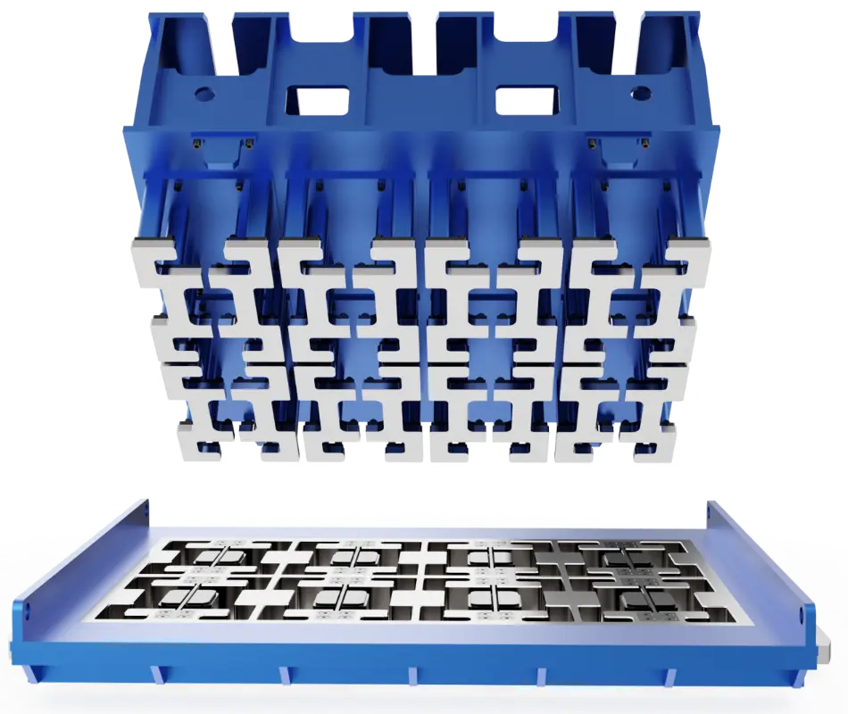 Tiilenvalmistusmuotit toimivat korkeataajuisen tärinän, korkeapaineiskun ja voimakkaiden hankausolosuhteiden alaisena pitkiä aikoja. Materiaalin ominaisuudet ovat keskeinen käyttöikää määräävä tekijä. Quangong Machinery Co., Ltd. valitsee muottien valmistuksessa erittäin lujaa kulutusta kestävää seosterästä ja suunnittelee kohdennettuja materiaalien yhteensopivuusmalleja tuotteen eri käyttöolosuhteiden perusteella. Optimoimalla materiaalin mikrorakenne ja lämpökäsittelyprosessit muotin keskeisillä osilla on erinomainen iskunkestävyys, vakaa väsymiskestävyys ja korkea kulutuskestävyys. Korkean intensiteetin jatkuvissa tuotantoolosuhteissa muotti voi silti säilyttää tarkat muottimitat ja selkeät tuotteen reunat, mikä vähentää tehokkaasti vaihtotiheyttä ja seisokkeja, mikä parantaa tuotannon yleistä tehokkuutta. Valmistusprosessissa muotin tarkkuus vaikuttaa suoraan tiilituotteiden ulkonäön laatuun ja pinoamisen vakauteen. Quangong Machinery Co., Ltd., joka luottaa erittäin tarkkoihin CNC-työstökeskuksiin ja automatisoituihin prosessointilaitteisiin, saavuttaa tiukan hallinnan muotin ontelon mittavirheitä kohtaan ja varmistaa, että tasaisuus, kohtisuora ja avainmitat pysyvät korkeiden standardien sisällä. Monimutkaiset muottirakenteet on valettu tarkasti yhtenä kappaleena, jolloin vältetään tehokkaasti kokoonpanovirheiden aiheuttamat laatuvaihtelut. Standardoitujen prosessointimenettelyjen ja tiukan laadunvalvontajärjestelmän ansiosta jokainen muotti varmistaa tuotteen mittojen tasaisuuden ja erän vakauden, mikä tekee siitä erityisen sopivan korkealaatuisten läpäisevien tiilien, päällystystiilien, kaltevuussuojatiilien ja erilaisten räätälöityjen epäsäännöllisen muotoisten tiilituotteiden laajamittaiseen tuotantoon.