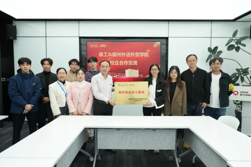 Perusteellisen vaihdon perusteella Quangong Machinery Co., Ltd. ja Fuzhou University of Foreign Studies and Trade allekirjoittivat virallisesti yhteistyösopimuksen ja perustivat "Overseas Employment and Internship -tukikohdan". Tämä tukikohta hyödyntää Quangong Machinery Co., Ltd.:n kypsiä ulkomaisia tytäryhtiöitä ja palveluverkostoa tarjotakseen opiskelijoille alustan ulkomaille harjoitteluun, työllisyyteen ja käytännön koulutukseen, mikä edistää täsmällistä linjaa kykyjen kasvattamisen ja yrityksen todellisten tarpeiden välillä.