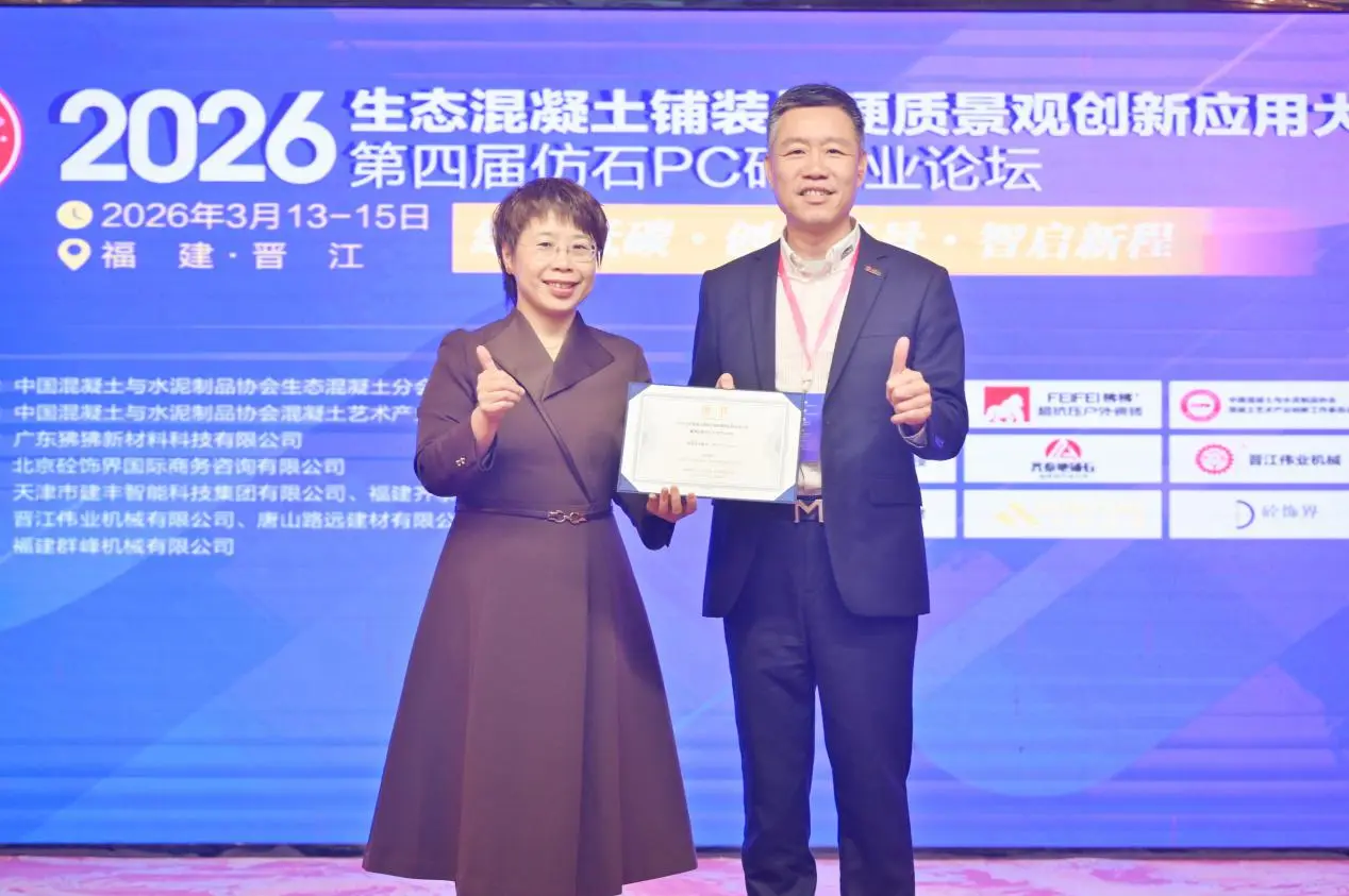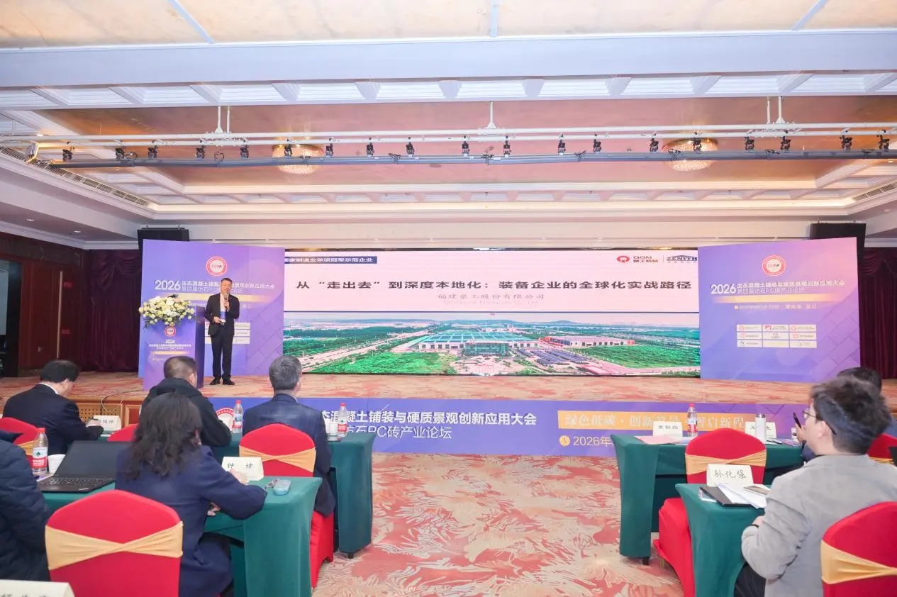 13.–15. maaliskuuta vuoden 2026 konferenssi ekologisen betonin päällysteen ja päällysteen innovatiivisista sovelluksista sekä 4. teollisuusfoorumi jäljitelmäkivi-PC-tiiliä pidettiin Jinjiangissa Fujianissa. Konferenssi, jonka teemana oli "Vihreät ja vähähiiliset: innovatiiviset maisemat, älykkäästi uuden suunnan kartoittaminen", kokosi yhteen asiantuntijoita, tutkijoita ja yritysten edustajia eri aloilta, mukaan lukien T&K, valmistus, suunnittelu, rakentaminen, testaus ja laitevalmistus. Yhdessä he tutkivat innovatiivisia kehityspolkuja ekologiselle betonipäällyste- ja maarakennusteollisuudelle. FujianQuangong Machinery Co., Ltd.kutsuttiin tapahtumaan, jossa se perusti näyttelyosaston esittelemään yrityksen teknologisia saavutuksia ja kokonaisvaltaisia järjestelmäratkaisuja betonituotteiden valmistuslaitteiden alalla.