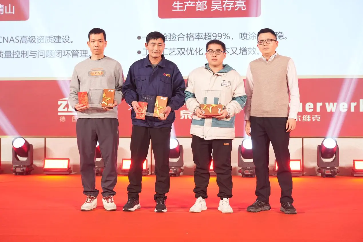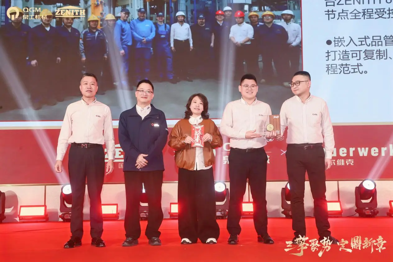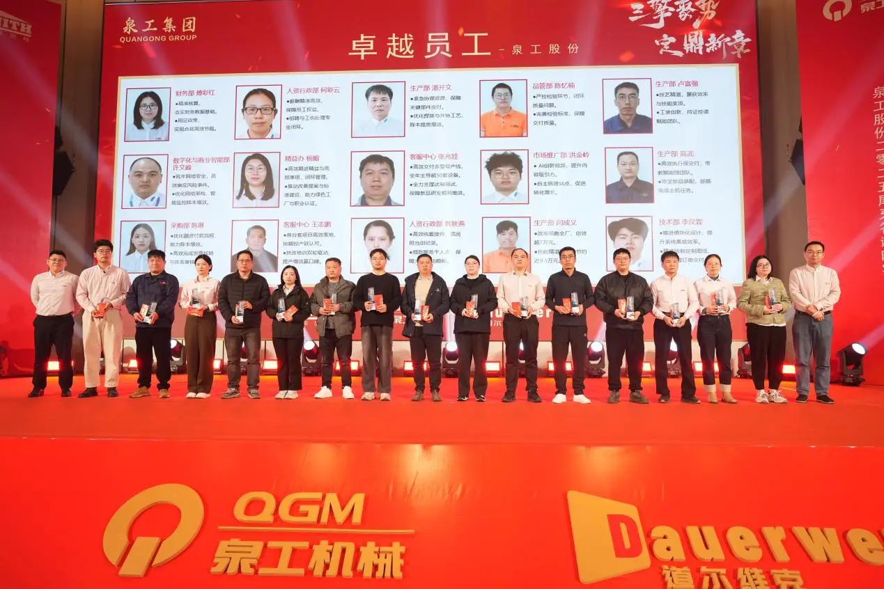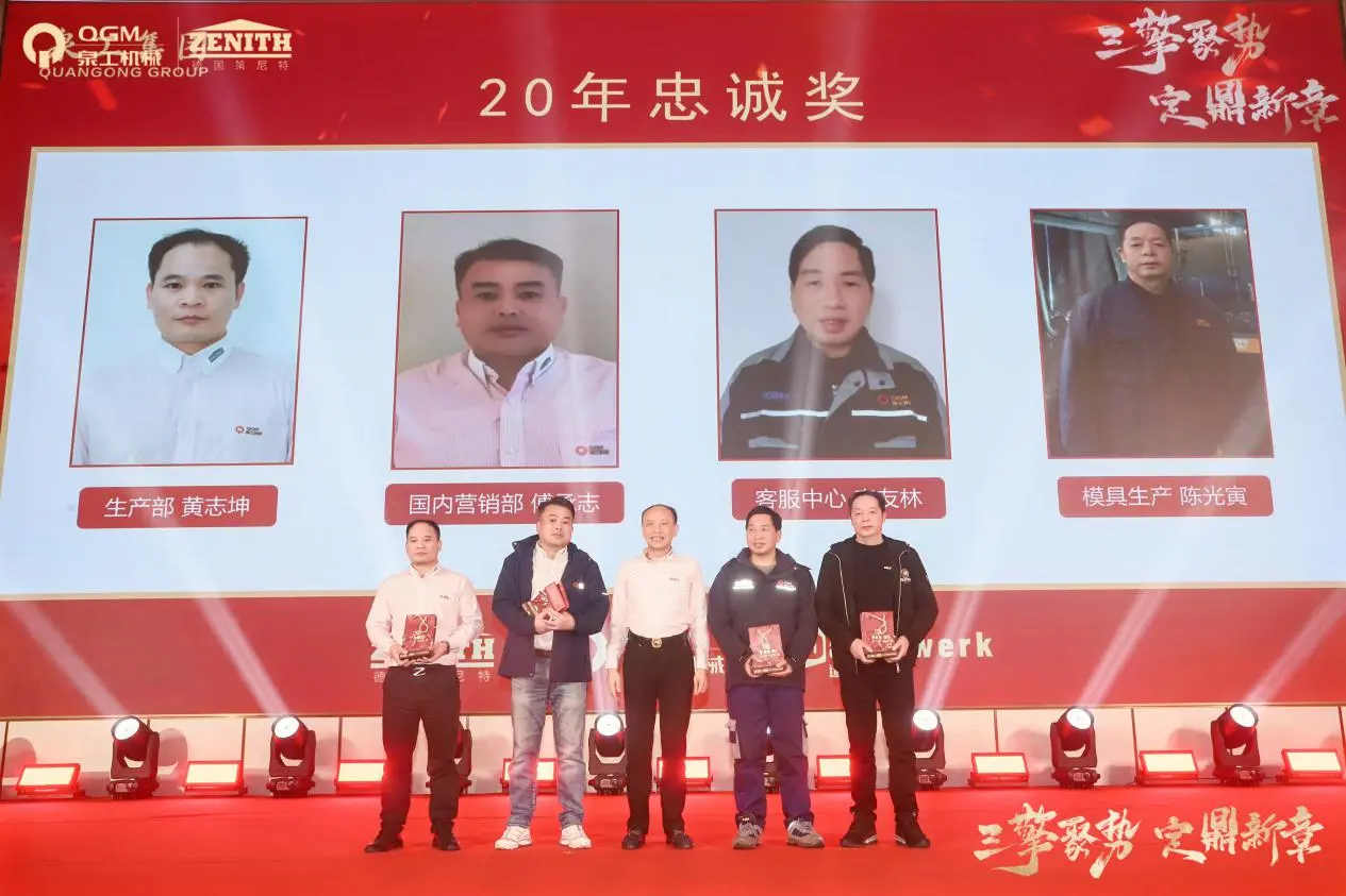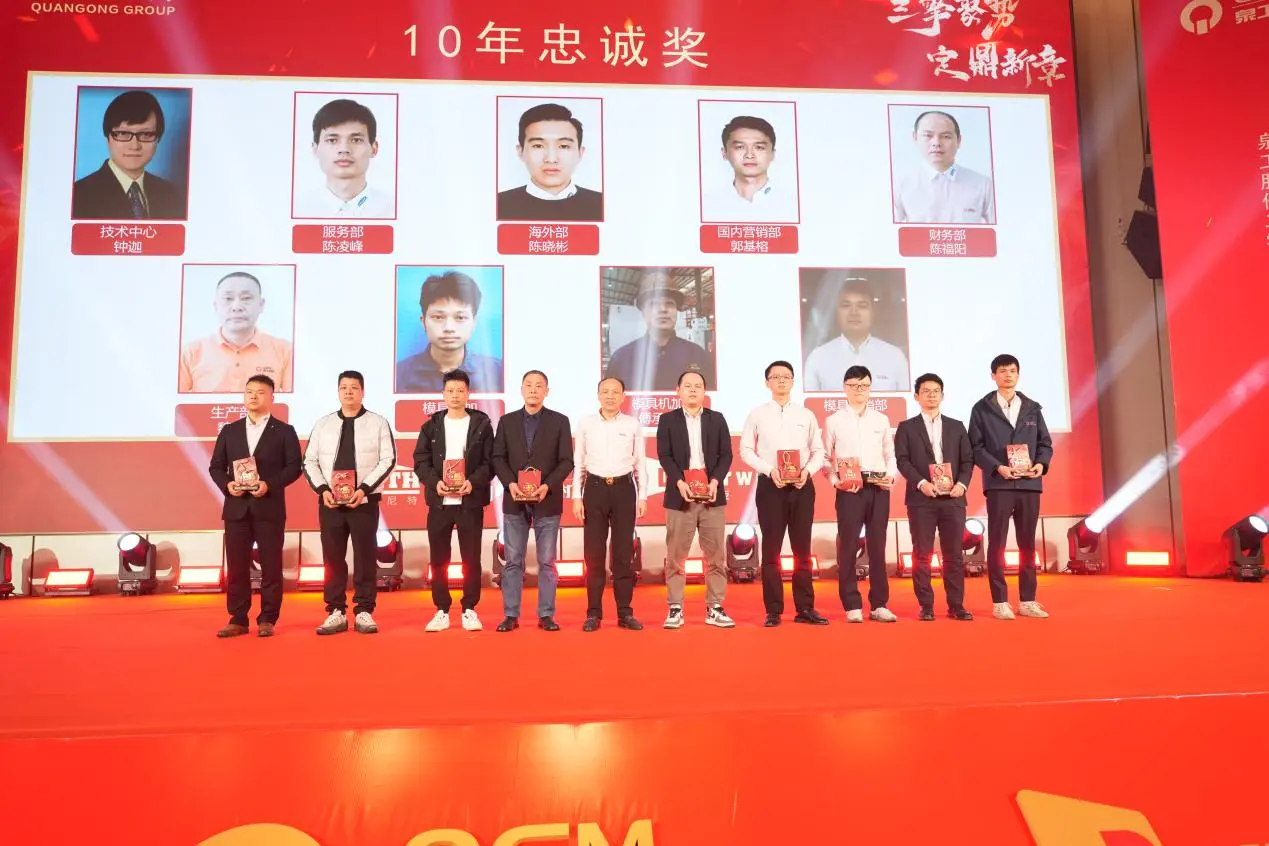 Vuosikokouksen aikana järjestettiin myös suuri palkintojenjakotilaisuus 10-, 20- ja 30-vuoden uskollisuuspalkinnoille. Lavalle nousi joukko työntekijöitä, jotka ovat kulkeneet käsi kädessä yrityksen kanssa ja kasvaneet yhdessä osoittaen täysin Quangong Machinery Co., Ltd:n vakaan kehityksen ja kestävän yrityskulttuurin vankan perustan.