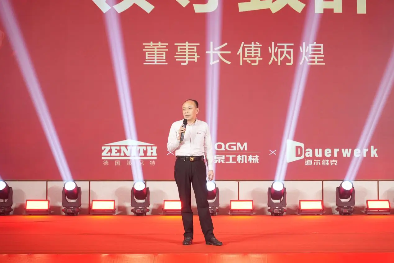 Puolueen sivukonttorin sihteeri ja Quangong Machinery Co., Ltd.:n puheenjohtaja Fu Binghuang ilmaisi vilpittömät kiitollisuutensa puheessaan puolueelle ja maalle suotuisan ympäristön luomisesta yrityksen kehitykselle ja kiitti asiakkaita heidän pitkäaikaisesta luottamuksestaan ja tuestaan. Hän esitti myös vilpittömät kiitoksensa kaikille työntekijöille heidän kovasta työstään läpi vuoden. Puheenjohtaja mainitsi erityisesti, että vuosikokouspäivänä monet työntekijät työskentelivät edelleen tuotantolinjalla ja projektityömailla ja osoittivat toiminnallaan vastuullisuuttaan ja omistautumistaan ja ilmensivät täysin yrityksen henkeä "ylpeänä kovasta työstä ja vakiinnuttamista käytännön toimien kautta".