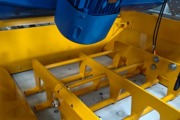 1Tärinäpöydän suunnittelu 4 servomoottorilla voimakkaampaa tärinää ja sujuvampaa. Tärinänvaimennuslaite turvatyynyllä Tärinäpöydän jokaiseen kulmaan on sijoitettu 4 turvatyynyä tärinän amplitudin vähentämiseksi tärinän aikana, jotta tärinäpöydän mekaaninen vaikutus lavoille vähenee, mikä vähentää kuormalavojen vaurioita tuotannon aikana ja parantaa lavojen käyttöikää.